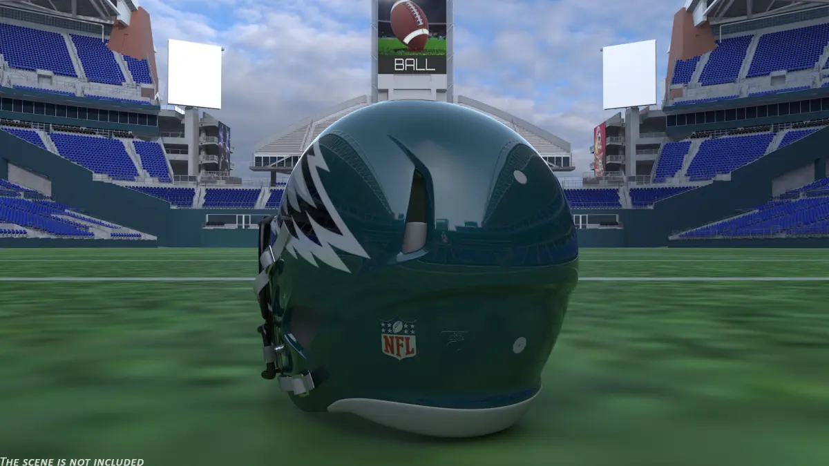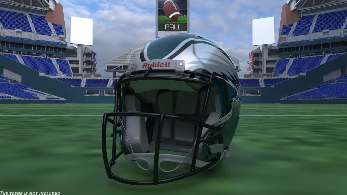 Philadelphia Eagles American Football Helmet is a three-dimensional model of a headdress part of the special protective equipment which used in American football sport activity.
