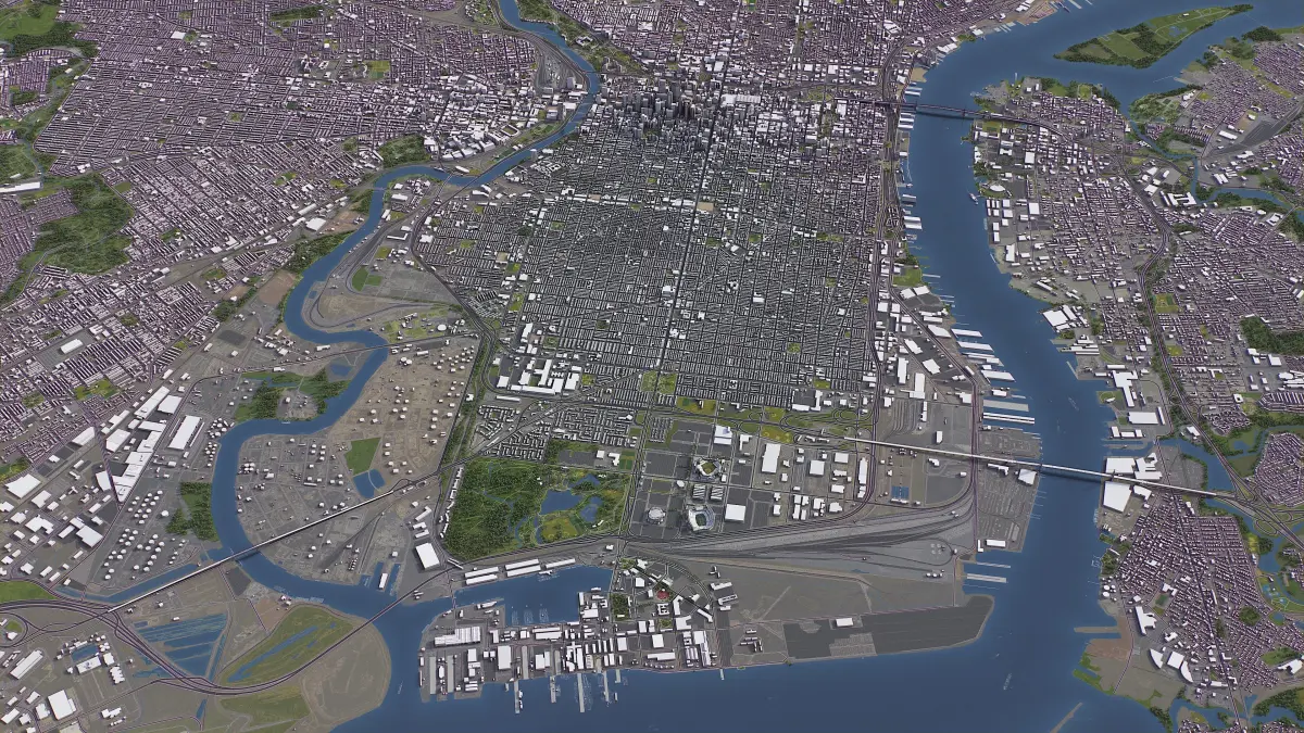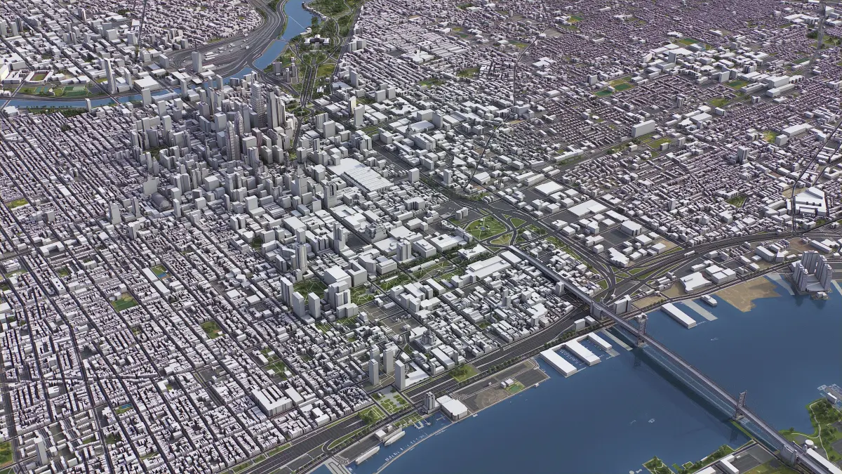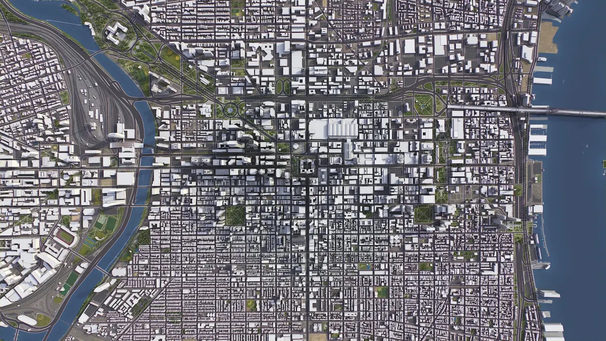 - Full city extents up to 100 x 100 km — or crop to an area of interest for better format compability and scene performance