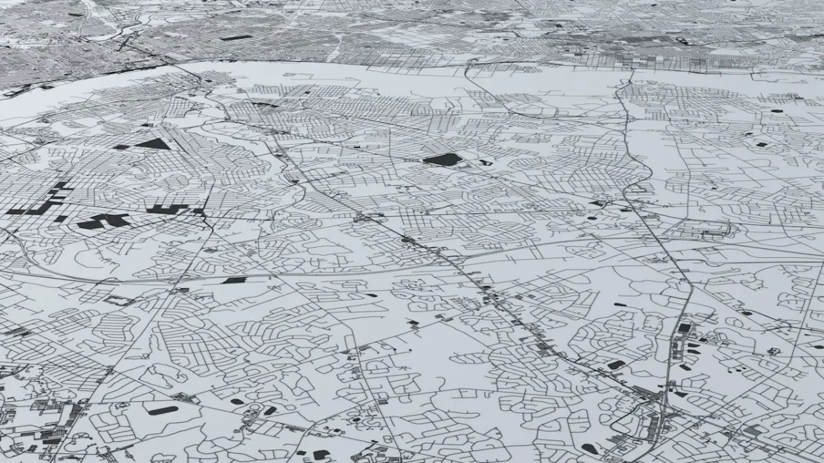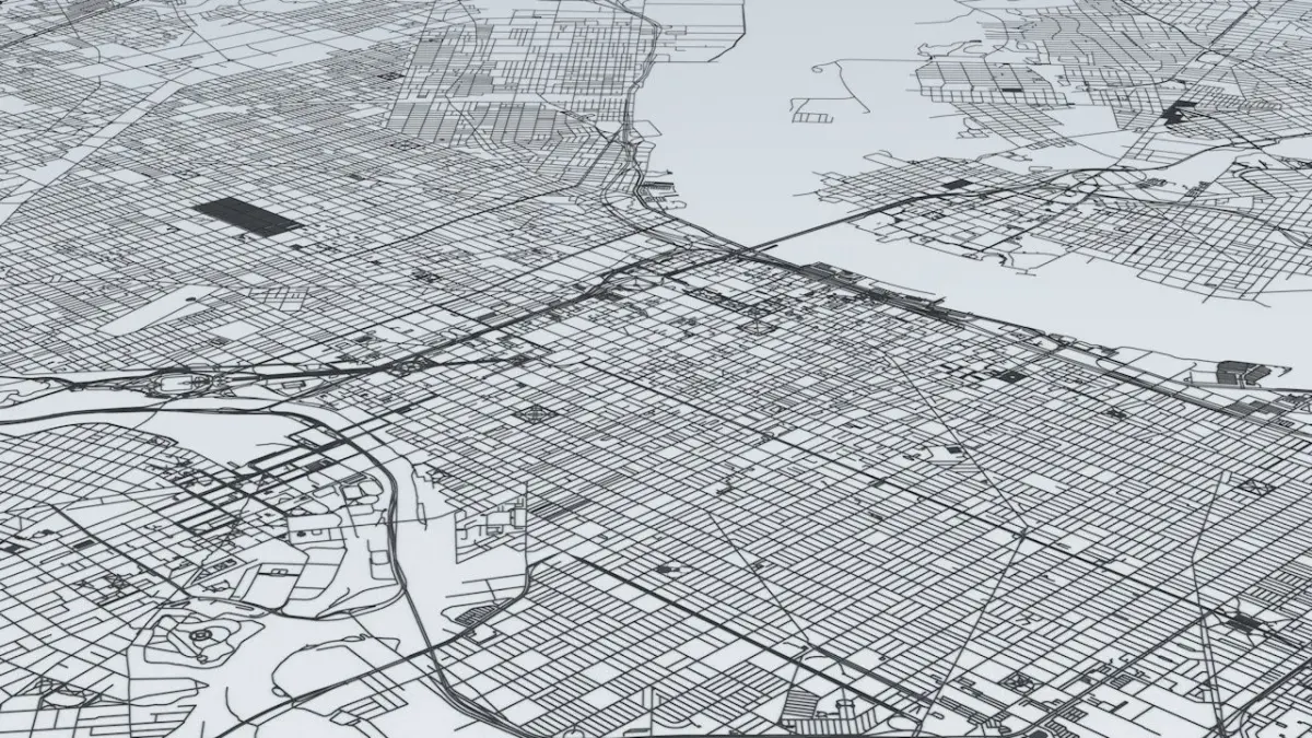 - the model is positioned on a flat surface (road network is on the “floor” - no elevation data included)