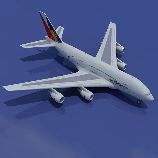 High detailed 3d model of Airbus A380.Textured as Philippine Airlines with high-quality jpeg texture (2048 x 2048)Rendered with Vray.Vray settings included in .max version only.HDRI Map not included.