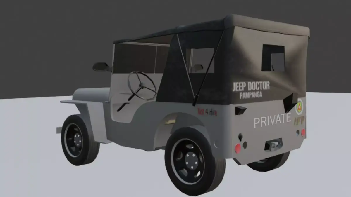 This is a 3D model of a Philippine Owner-Type Jeep, a locally customized utility vehicle commonly used for personal transport and small businesses across the Philippines. Inspired by classic jeep designs, this vehicle is known for its compact size and open-body structure.