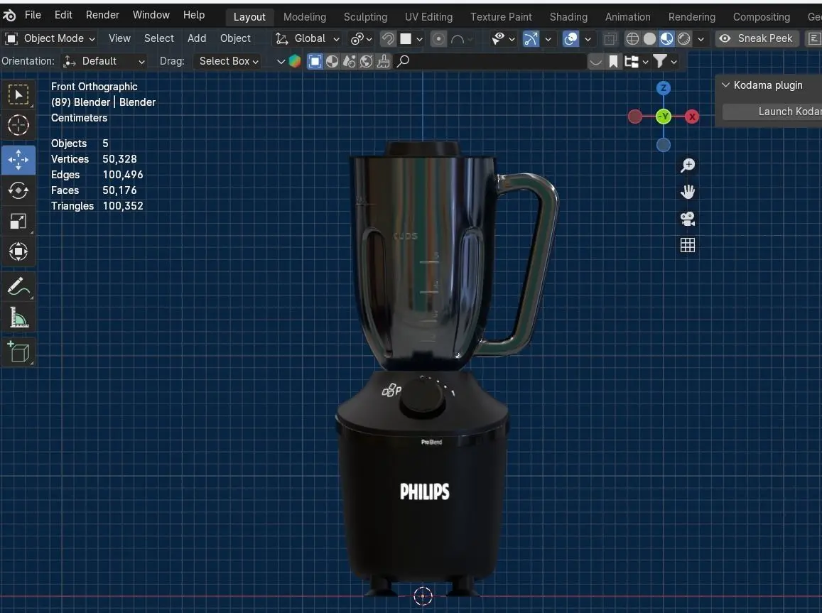 This is a high-quality 3D model of the Philips 3000 Series Blender. The model is textured in 4K for exceptional detail and realism. It is available in Blender format, ensuring compatibility and ease of use for your projects. The model includes accurately designed blender feet and a pitcher lid. Ideal for use in product visualization, animation, and other 3D applications.