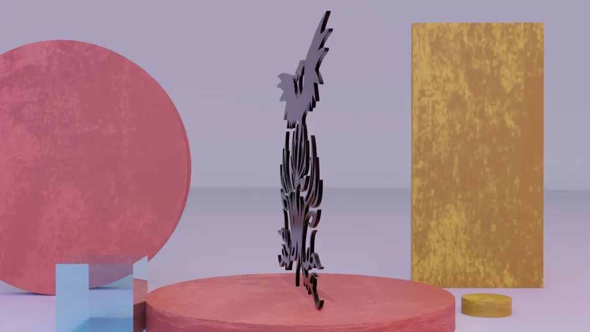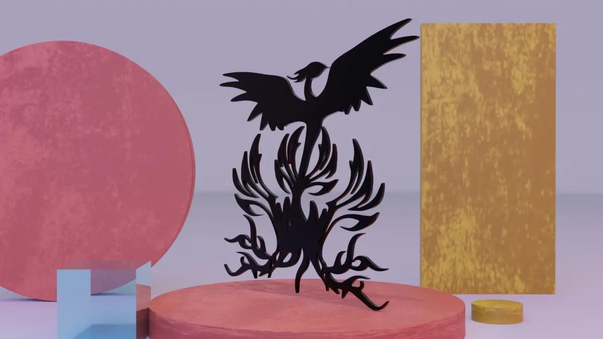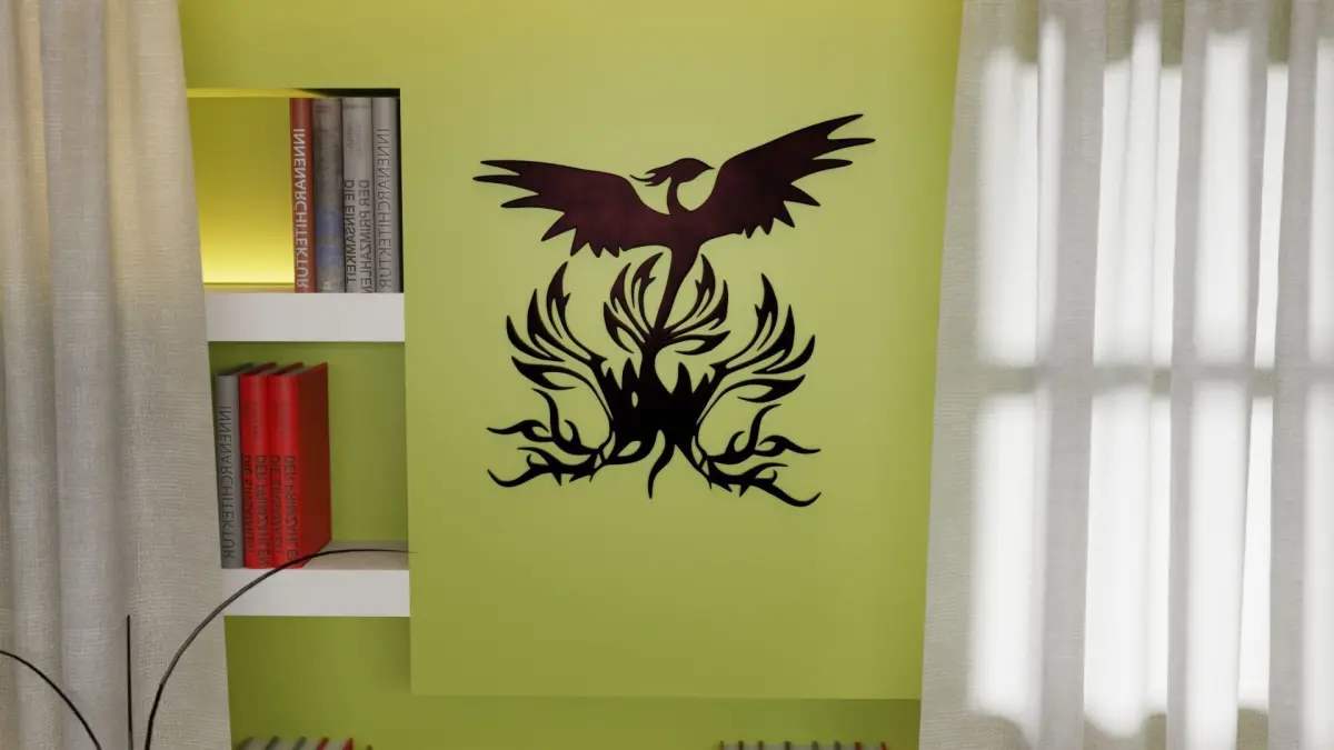This is low-poly 3D model of the Phoenix - Immortal bird wall art.
