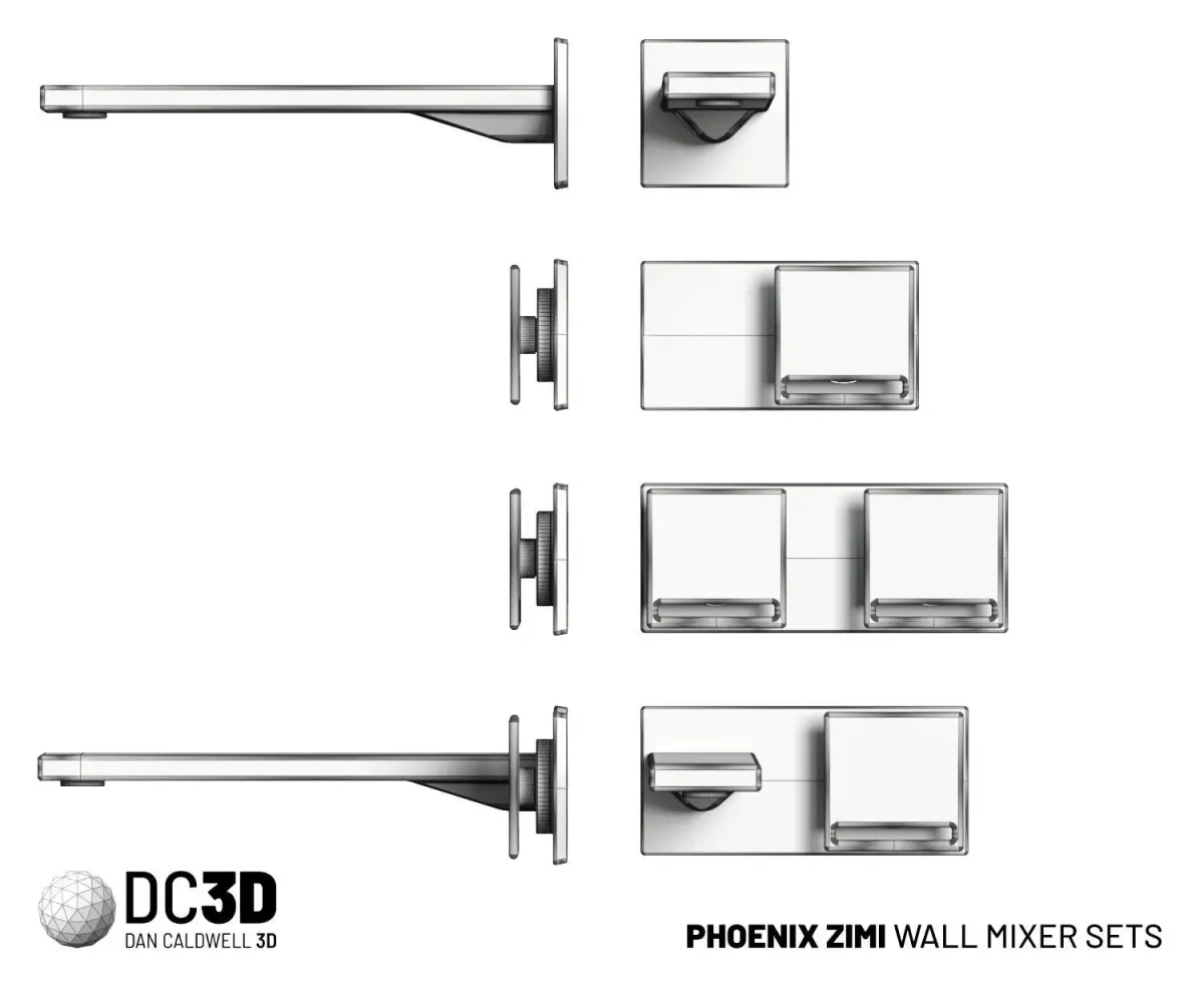 These Phoenix Zimi tapware models are perfect for architectural visualisation and product visualisation renders requiring on-trend, customisable tapware with modern clean lines.