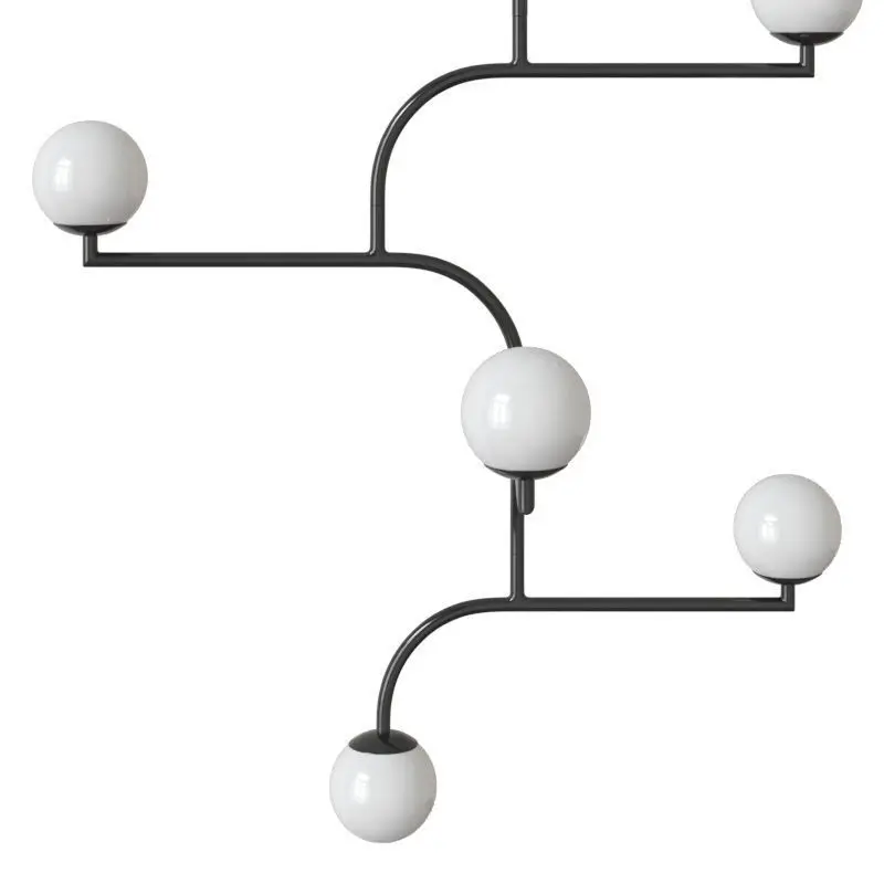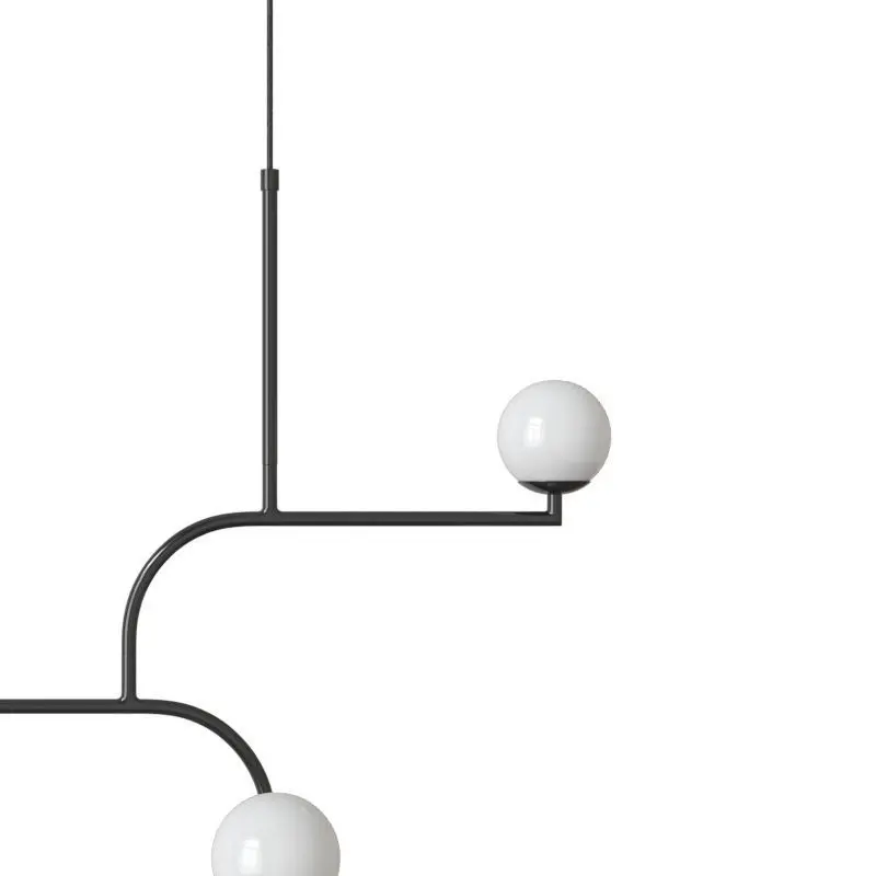 Pholc’s Mobil 100 pendant features five opal glass shades and four identical metal elements that can be turned around to create a desired composition. The elegant pendant is available in three finishes and will catch the eye with its beautiful mobile-like shape in any dining and living room.