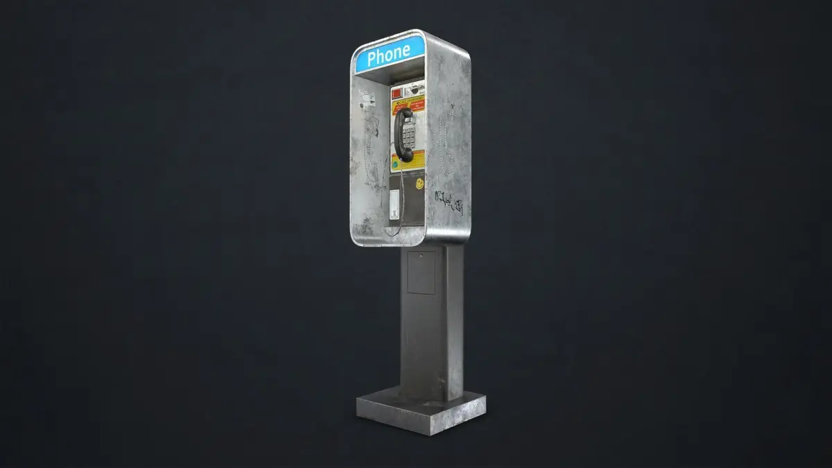 Low Poly Phone Booth 3D model with 2 PBR texture sets (clean and dirty):