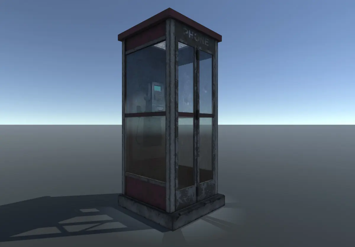 Low poly phone booth model with PBR textures. In the unitypackage available flashing light, as the error lighted phone booth and a script what always rotate the light cone to the camera face, please see the sample scenes.