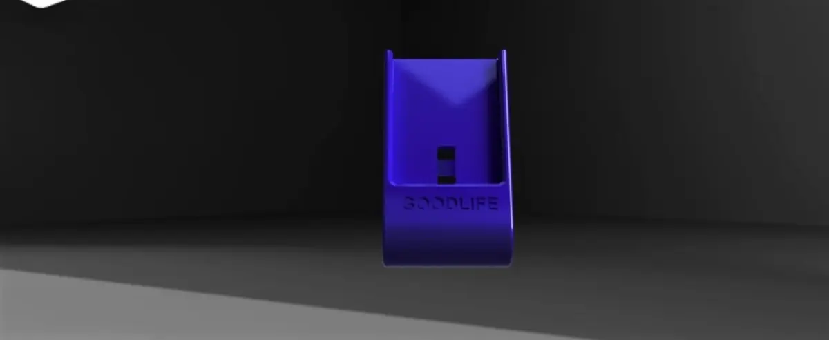 IPhone case holder fix size can be printed via 3d Printer, The holder has a width 60mm. The front engraved the words, GOODLIFE. Note: I am a beginner. The visitor can provide additional suggestions for the experience.