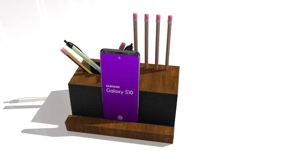 PHONE STAND AND PENCIL CASEThis pen holder model has room for both pens and phones. It is designed from wooden material. If you wish, you can cut and combine parts of the same dimensions and make them manufactured.
