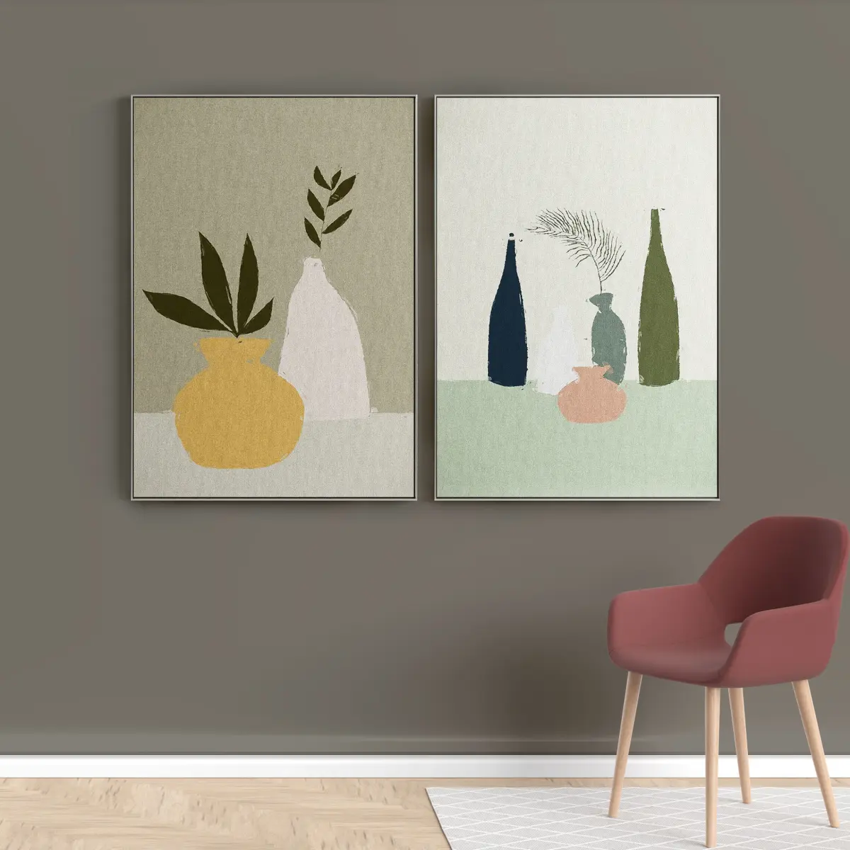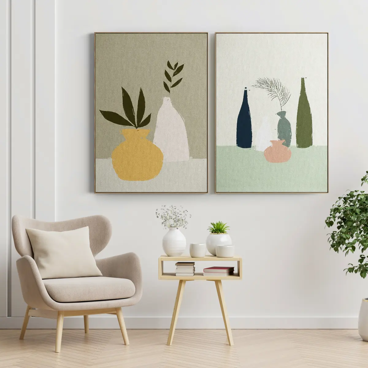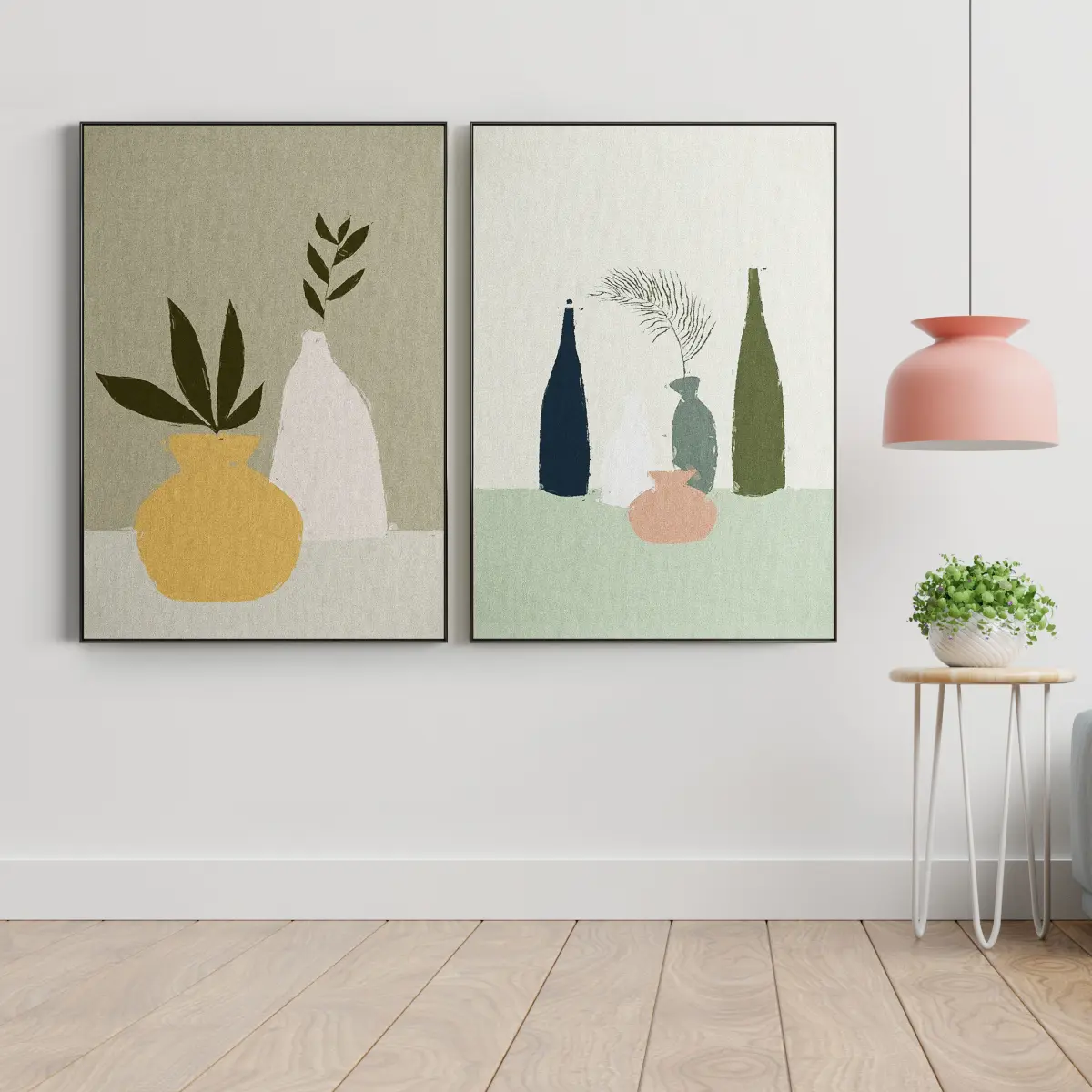 Set of paintings in frames for interior
