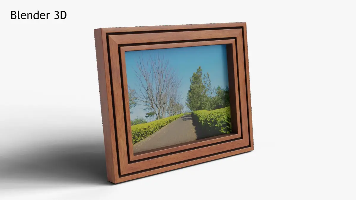 PBR realistic 3D model of a wooden photo frame, suitable for renders and games.