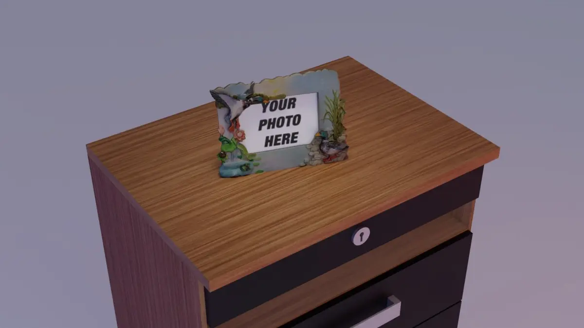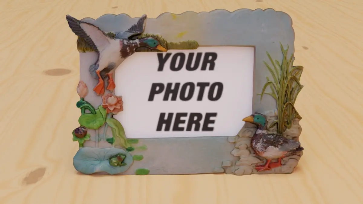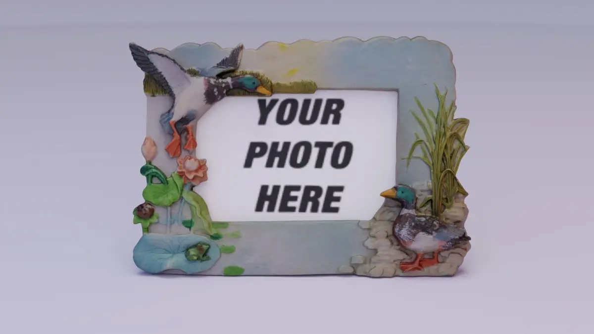 Photo frame witch duck figures hi-poly 3D model