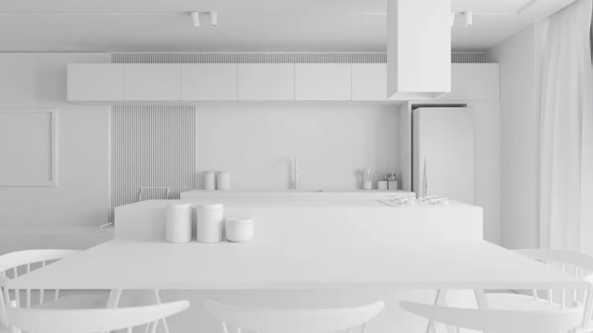This is a fully textured interior scene with natural and artificial light setup, ready to render.