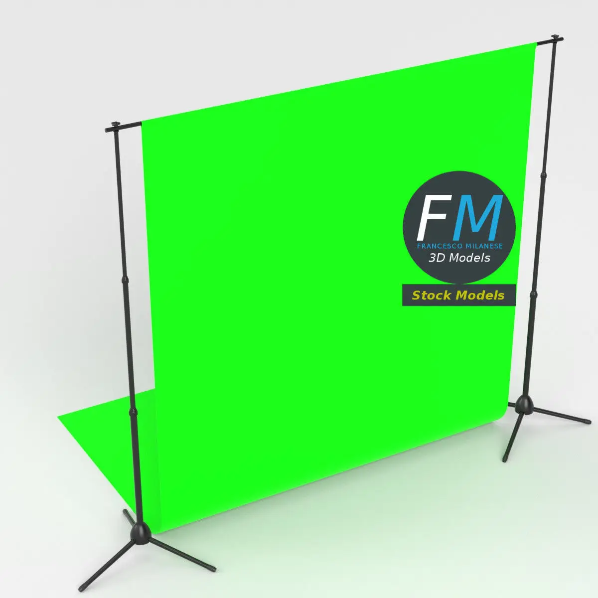 Photography studio backdrop 3D Model. 4 objects (2 tripods, 1 bar, 1 backdrop canvas), sharing 2 non overlapping UV Layout maps, Materials (rig, backdrop) and PBR Textures sets. Production-ready 3D Model, with PBR materials, textures, non overlapping UV Layout map provided in the package.Quads only geometries (no tris/ngons).Easily customizable: UV unwrapped geometries, so you can create new Textures (or modify the existing ones) using the UV Layout maps provided in the package (as png with alpha).Each Object, Material or Texture provided in the package has a unique, meaningful name.Made in Blender with a Cycles PBR shader with textures included (principled and Eevee compatible), then exported to OBJ and FBX; materials and textures made in Substance Painter, exported for PBR, V-Ray, Unity, Unreal.PROMO IMAGES: the first image has been rendered in Cycles for Blender; in particular, you can find 11+ promo images in this description: