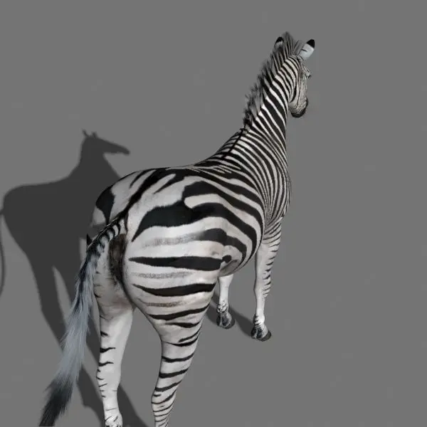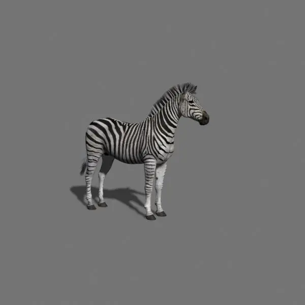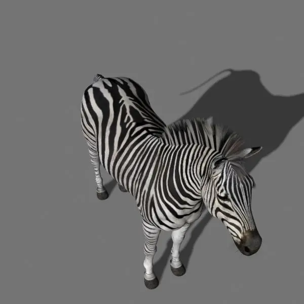 The OBJ format doesn´t have fur or animation or rigging, only The FBX has basic rigging without controlers, and has animation. Both are completely mapped. Please don´t forget to remove your material editor´s predefined bluriness that is applied to the zeb diffuse map. That bluriness decreases the map´s quality and makes the UV´s limits noticeable. Zero blur is better, and ray traced shadows also.