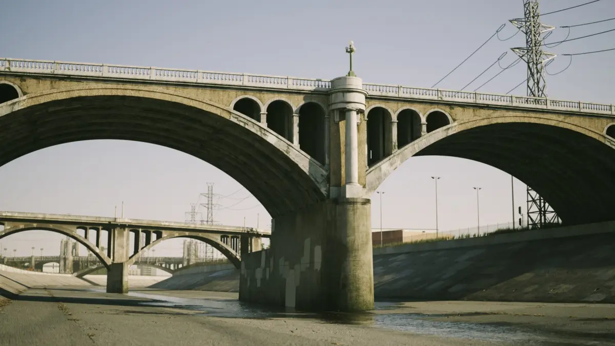 - Scene is based on an existing section of the Los Angeles River between the N Main Street and Arroyo Seco Parkway bridges but it also features the iconic 4th Street Bridge, which is in reality located further down the river. Hence the scene is not geographically entirely accurate.