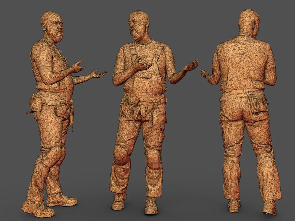 Photorealistic Construction Worker Character 3d model ready for Virtual Reality (VR), Augmented Reality (AR), games and other real-time apps. Suitable for the architectural visualization and another graphical projects. 50 000 polygons per model.