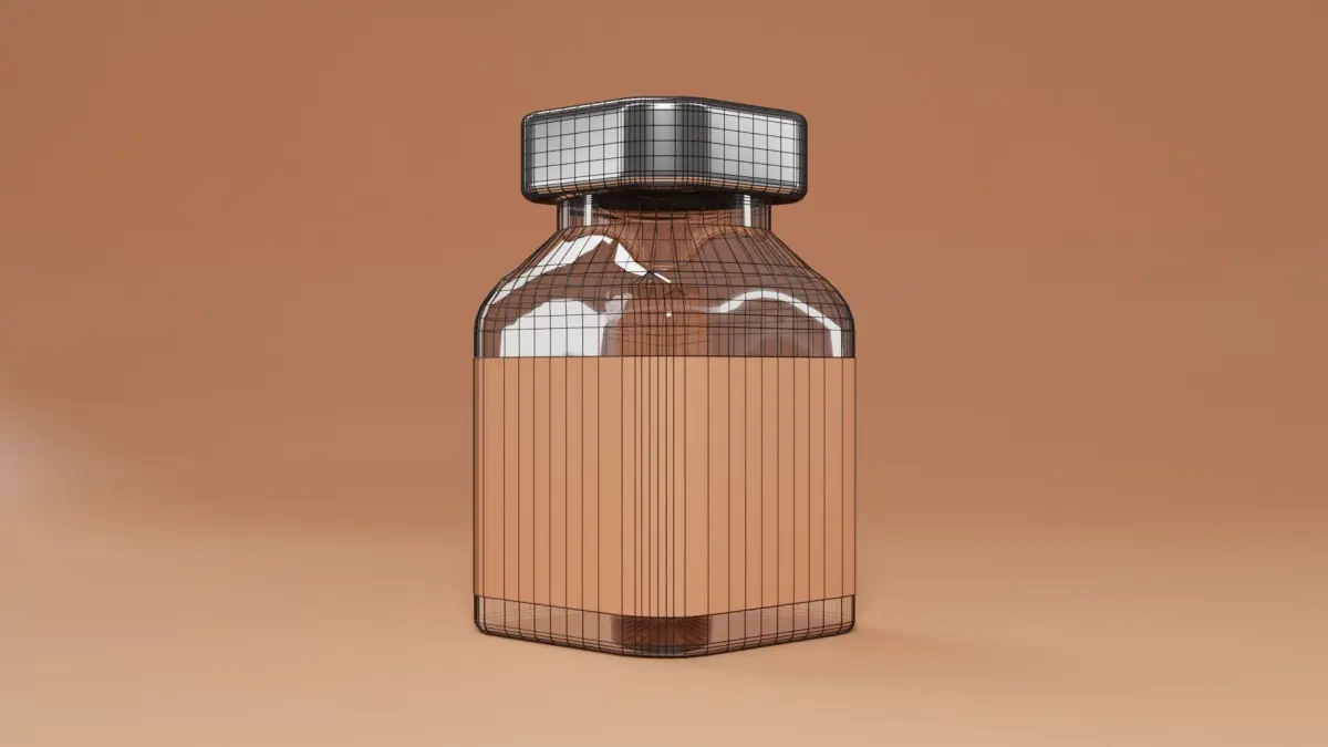 Photorealistic model of glass bottle, great for product visualization.