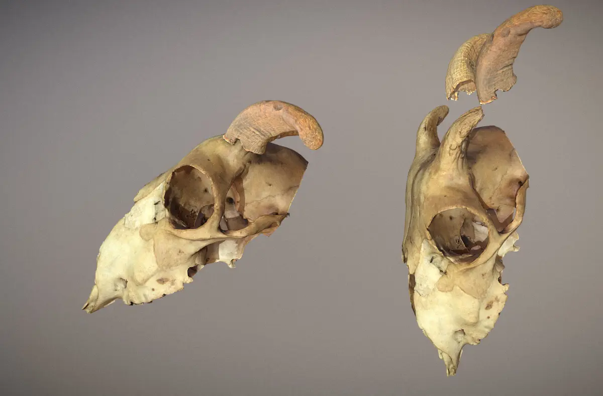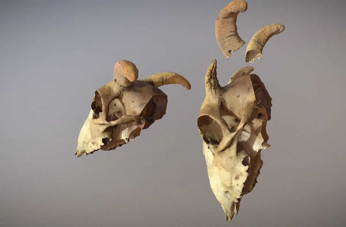 High poly version of a skull with removable horns. This skull is quite big around 40cm in length (16 in) and it is most likely a cow's skull. (for VFX or print) (low poly is uploaded separately). Model comes with BPR texture + bump texture at 4k for skull and for horn. 46257 verts, 92594 p. for main skull. 62100 v. and 124229 p. for skull and horns.