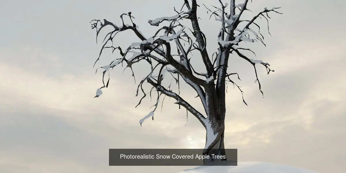 This collection includes photorealistic snow covered apple trees in low poly and mid poly and high poly version for your VFX, Games and 3D environments.The old apple tree is photographed under favourable weather & light conditions, accurate photo scanned with attention for detail. Both types of this pack (lowpoly and midpoly) are retopologized, clean and unwrapped. Ready for use them in a close-up shot or as a particle system.