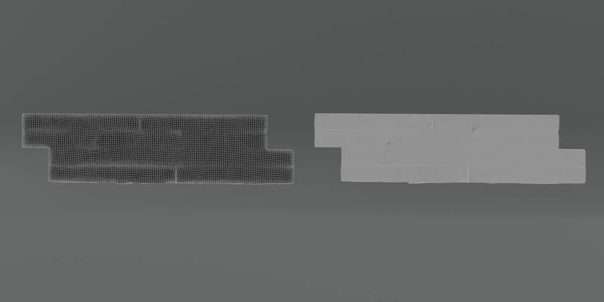 Both versions (lowpoly and midpoly) come from the 3D scanning process. Their meshes were cleaned and poly-reduced, the lowpoly and the midpoly are highly deccimated to be more fluently in the work process. They are also optimized and retopologized into square meshes for the subsequent efficient work with them.