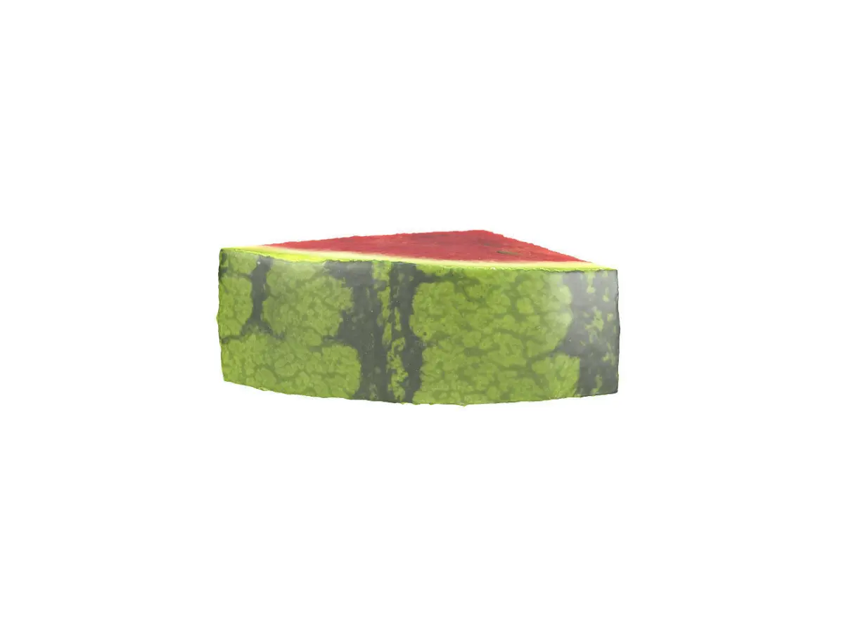 Highly detailed, photorealistic 3d scanned model of a watermelon slice. Optimized topology and uv unwrapped.