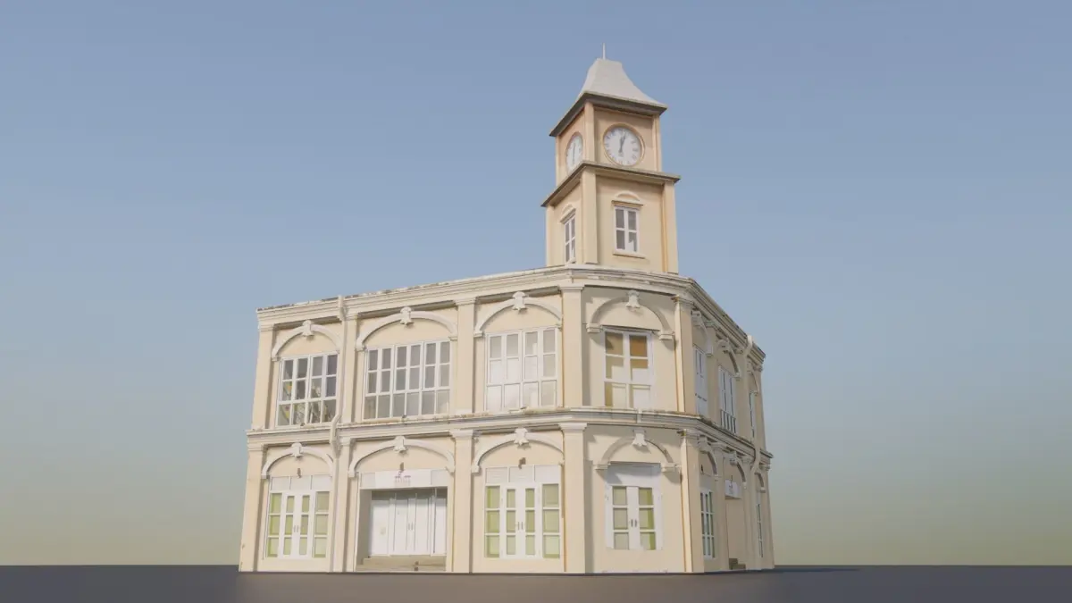 Phuket-Oldtown-1 building with clock tower Low-poly 3D model