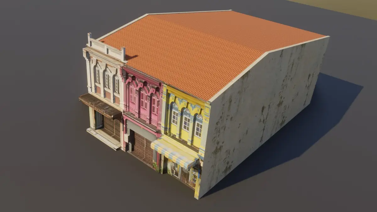 HomeCatalogPhuket-Oldtown-6 colorful building Low-poly 3D model