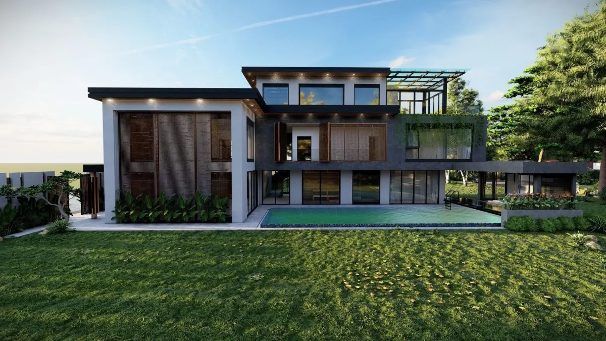 PHUONG'S VILLA: The model includes only the building + basic interior furniture + Lumion render. Please review the attached picture from Sketchup. *Exported model by materials, very easy to change them. Only 3D model (textures are not included) If have any problems with the model, please do not hesitate to contact me. Thanks!
