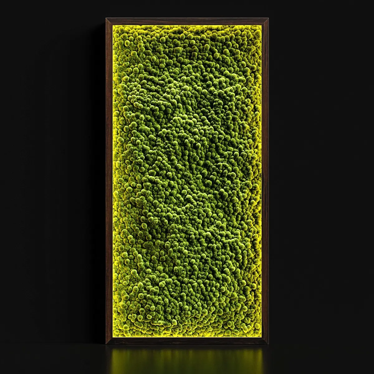 Stabilized moss in a frame with LED backlight. Suitable for both the interior in the loft style and for the modern. It can be used as a decor over the headboard or a desktop in the nursery. It can also be used as an accent in the living room or kitchen. It can also be used in various public spaces, such as a restaurant, bar, cafe or club.