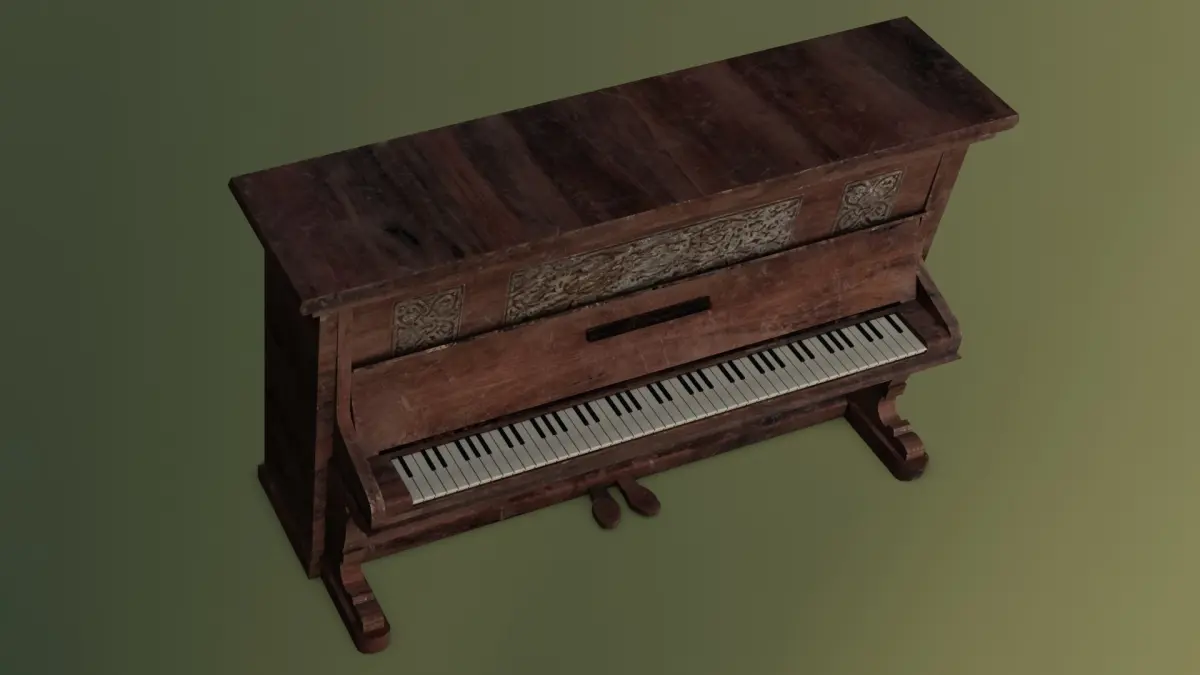 Materials:A diverse range of materials has been skillfully employed to define the surface properties of the piano, capturing the nuanced interplay of light and shadow across its surface. From the glossy finish of the polished wood to the matte texture of the metal hardware, each material is meticulously crafted to evoke a sense of authenticity.