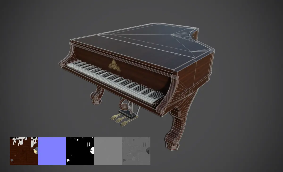 Classic closed lid piano. For use in games,VR / Realtime or animation,Quad model.