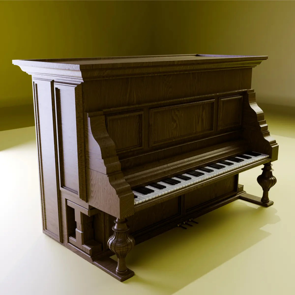 Ce modèle 3D est une représentation réaliste d'un piano droit vintage en bois, conçu avec des détails soignés et une texture de bois authentique. Ce piano est idéal pour des projets de visualisation architecturale, des scènes d'époque dans des jeux vidéo, des animations et films nécessitant un mobilier classique, ou même des présentations de design d'intérieur avec une touche de nostalgie.