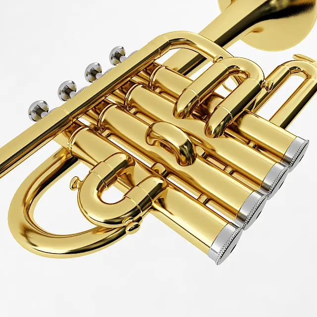 High poly 3d model of a Piccolo Trumpet. Comes complete with both Vray and Standard procedural materials.