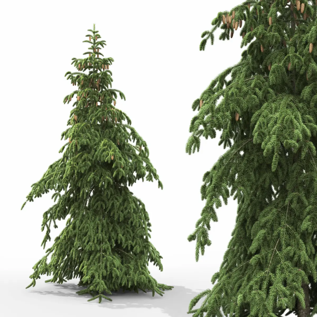 In the scene 2 models of spruce pendulaNeedles using opacity map