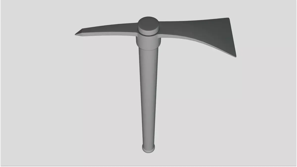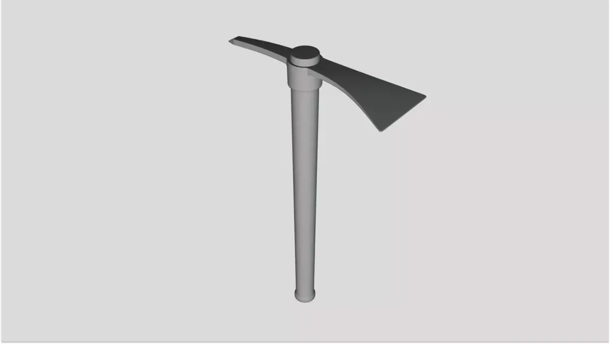 3D model of a pick mattock tool featuring a metal blade and handle grip. Suitable for construction scenes, gardening visualization, farming tools, and outdoor environment props.