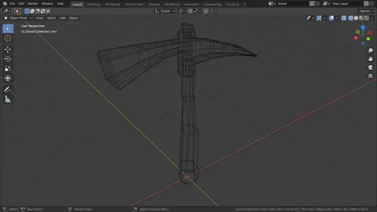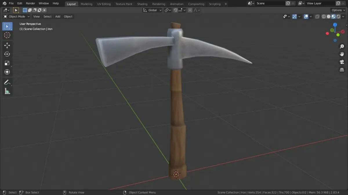 Low-poly pickaxe 3d model