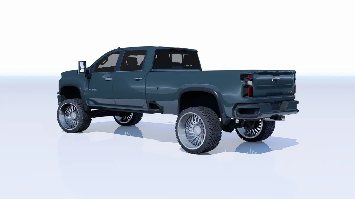 A lifted chevy 2500 HDThe Model has a complete full interior Everything in the renders is in the filesFormats: BLENDER, OBJ, SKETCHUP.
