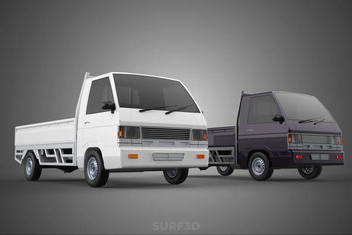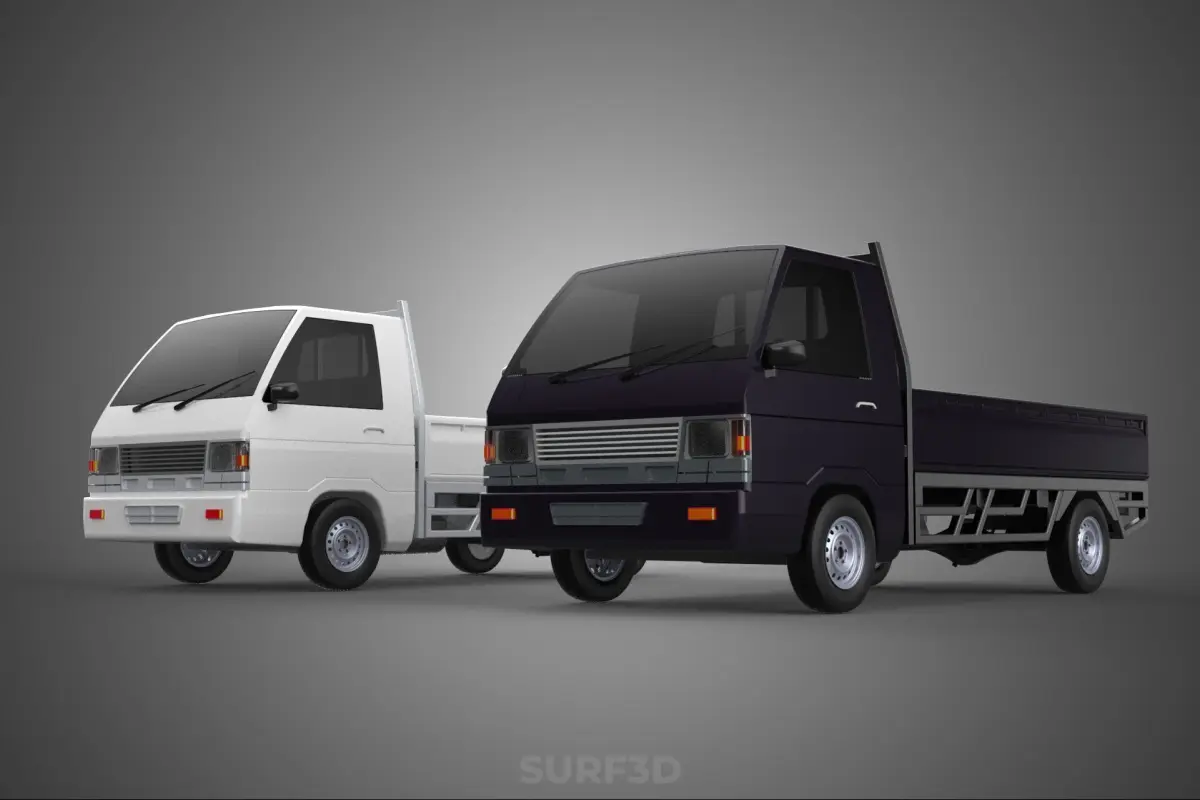 In summary, the Mitsubishi Delica L300 configured as a flat deck pickup serves as a practical and durable workhorse in agricultural settings, valued for its versatile cargo handling capabilities and ability to operate effectively in rural, often demanding, conditions.