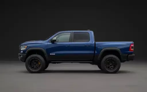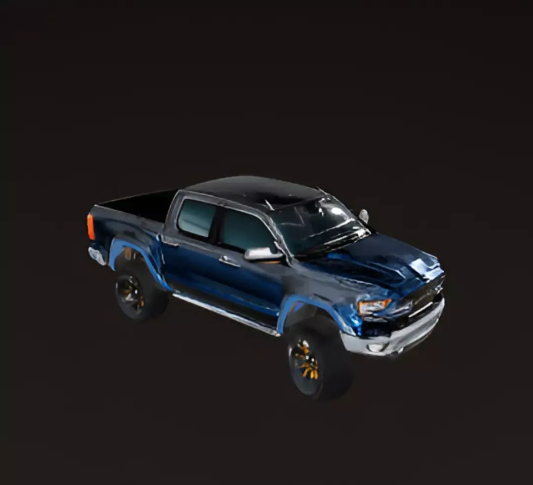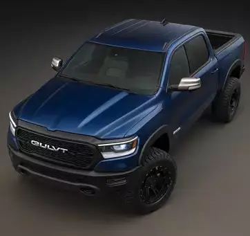 A dark blue, heavily modified pickup truck. The truck features a rugged, off-road aesthetic with a lifted suspension, aggressive all-terrain tires on black and yellow accented wheels, and prominent fender flares. The front grille is a bold, honeycomb design with large GULVT lettering, and the headlights have a modern, sleek LED signature. The vehicle's dark blue paint has a matte or satin finish that contrasts with the black trim and chrome accents. The overall look suggests a high-performance, custom-built off-road machine.