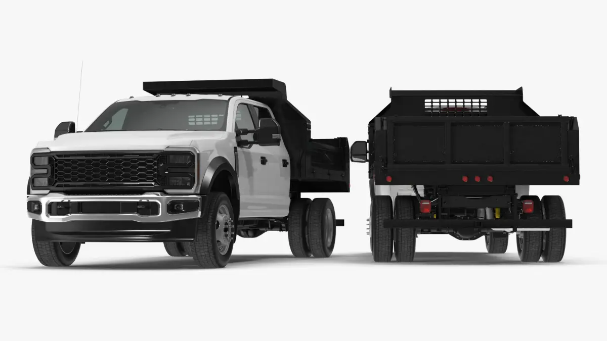 Modern dump truck which is commonly used in professional, commercial and industrial applications such as landscaping, towing and construction due to its robust capabilities, and which has impressive towing and payload capacities, making it suitable for various heavy-duty work, and which features a specifically designed reinforced frame and suspension components to handle heavy loads. Medium duty dump truck which is configured as a powerful dump truck, and which has specifically designed dump body, and which is the specialized rear portion of the truck which can be hydraulically raised and tilted to unload materials and other loads.