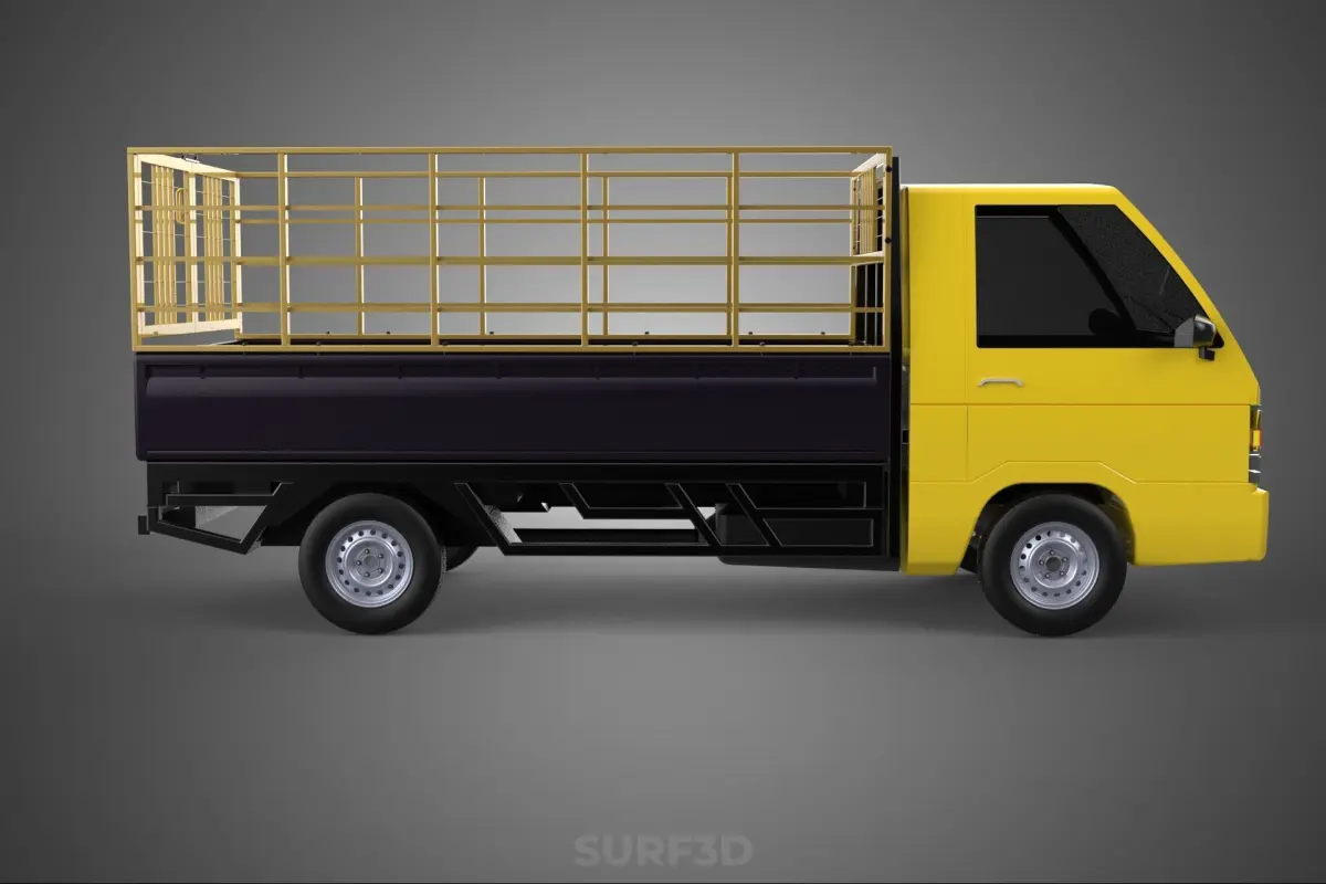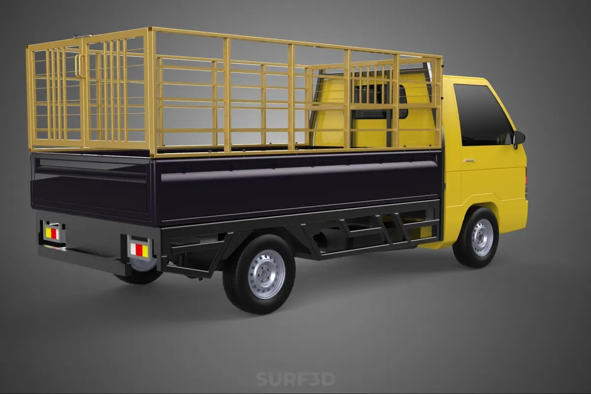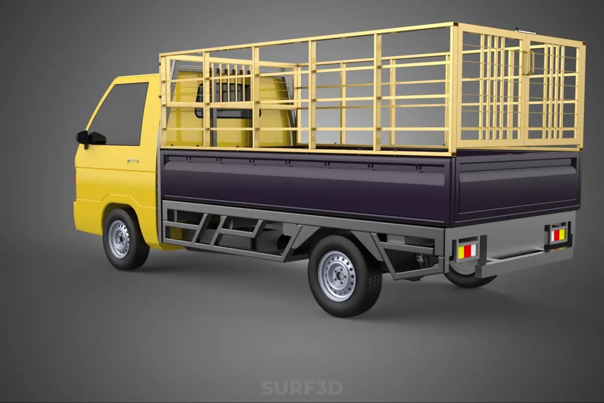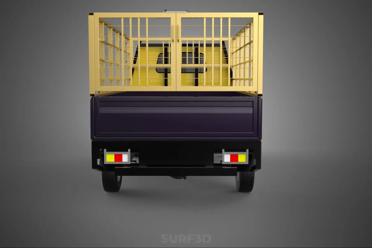 A pickup truck equipped with a metal cage superstructure affixed to its cargo bed is a specific configuration of a light commercial vehicle primarily designed for the secure and efficient transport and delivery of goods within logistics and commercial operations. This adaptation enhances the utility of a standard open-bed pickup truck by providing increased volumetric capacity, containment, and security for various types of cargo.