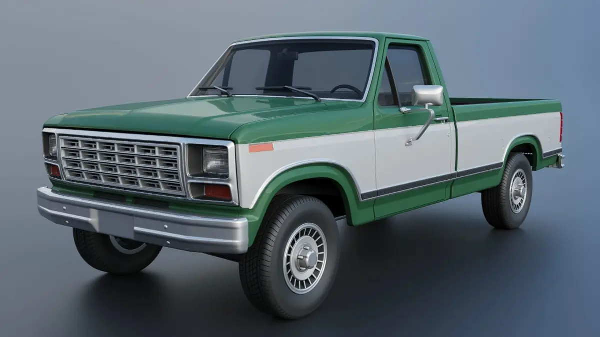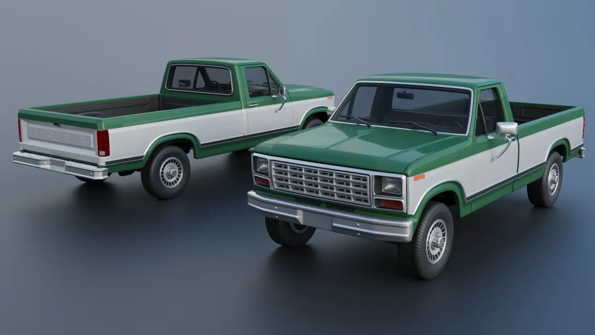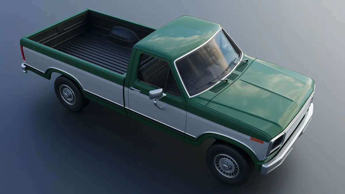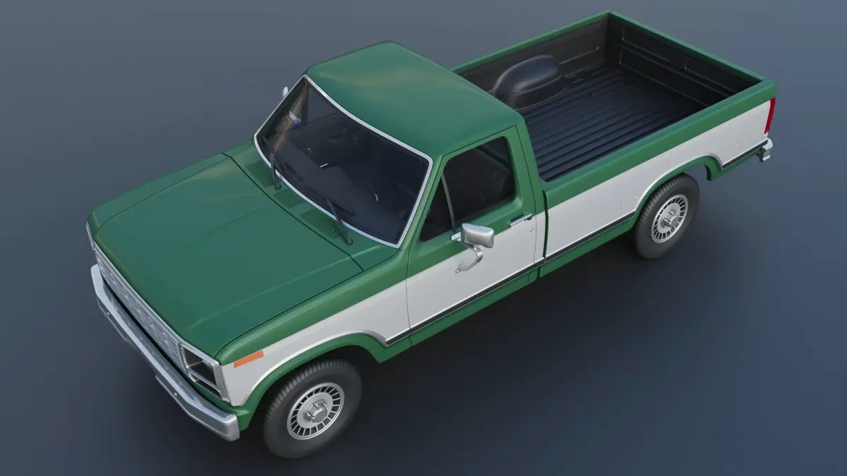 The model includes •Cab •Cab without hood •Hood •Grille •Bed •Cab divided into 2 parts •Bed divided into 4 parts •Bumpers •Interior •Chassis •Engine •Wheels •Tires •Windows and glass for headlights and taillights