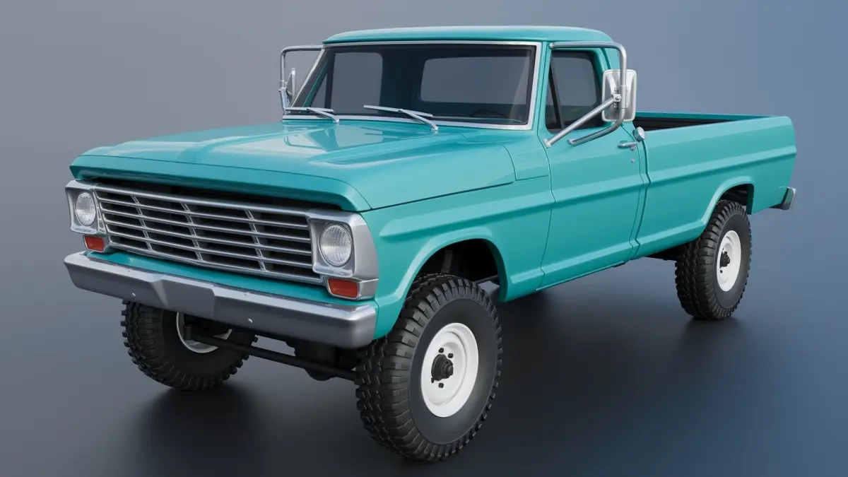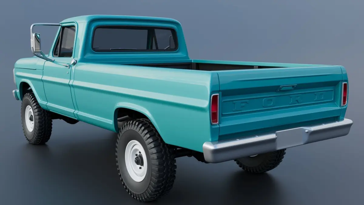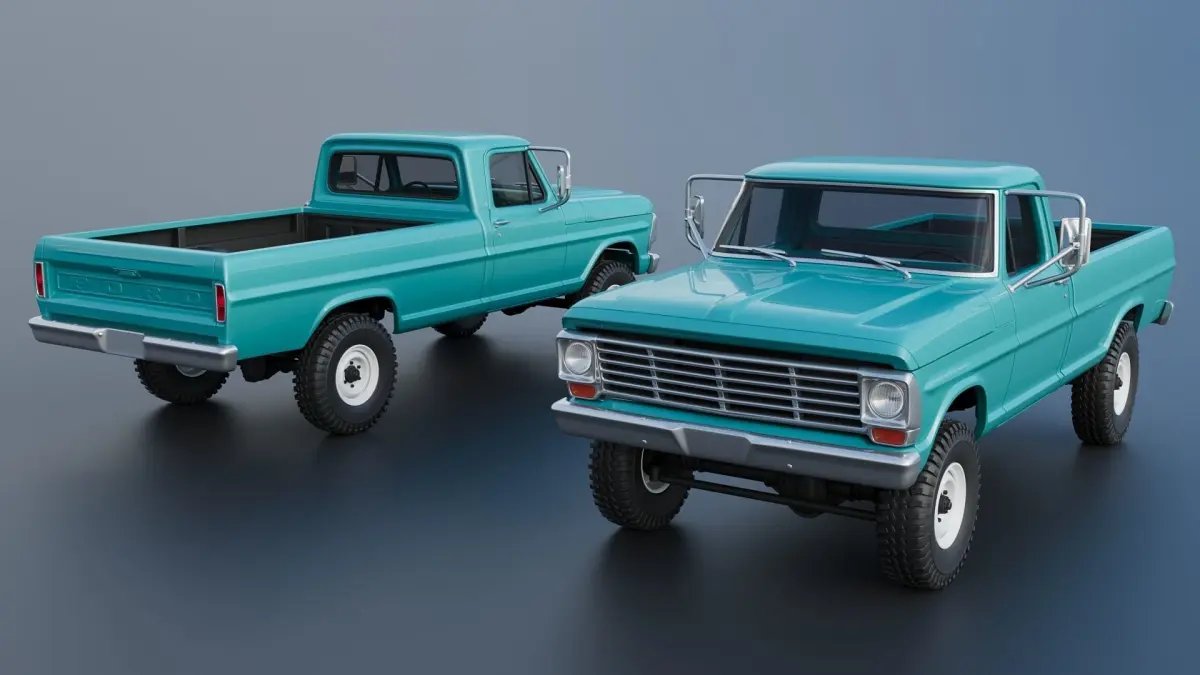 The model includes •Cab •Cab without hood •Hood •Grille •Cab divided into 2 parts •Bed divided into 4 parts •Bumpers •Interior •Chassis •Engine •Wheels •Tires •Windows and glass for headlights and taillights