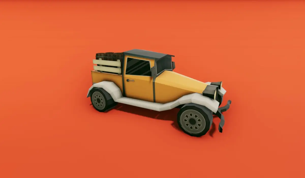 This package contains a pickup truck carrying wooden barrels. There are different colors of textures to change the truck color.Originally modeled with quads in Cinema 4D.