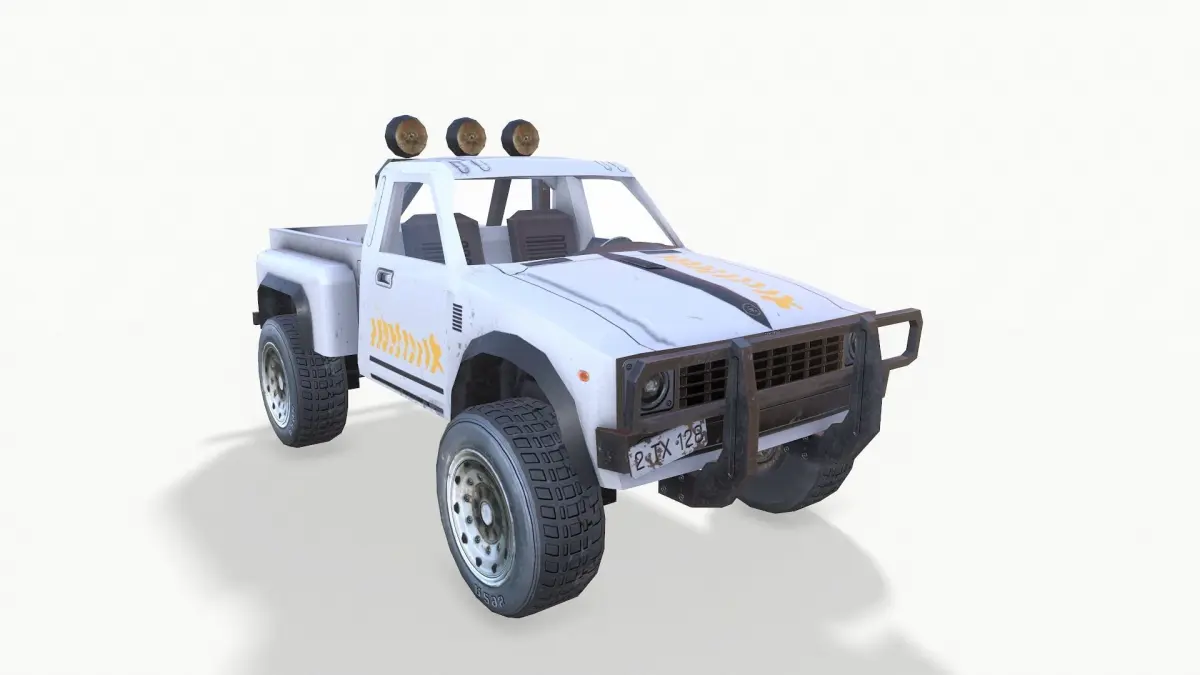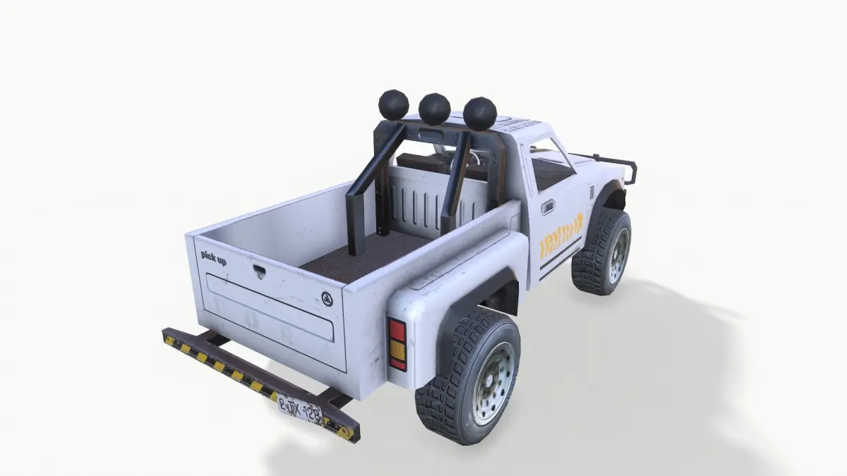 PickUp WhiteZIP included file formats: -mb -fbx -dae -obj -TGA Low poly: 4463 tris TEXTURES: Pick_up_White_AOPick_up_White_DMPick_up_White_MMPick_up_White_NMPick_up_White_RMPick_up_White_HM(4096x4096) PickUp_glass_AOPickUp_glass_DMPickUp_glass_MMPickUp_glass_NMPickUp_glass_RMPickUp_glass_HM(2048x2048)The scene was modeled with Autodesk Maya 2018. All objects are grouped and named correct for easily selections and management. No special plug-in needed to open the scene. Entire scene was modeled at real scale. This model is scaled to real world. Units of measurement: centimeters. All materials named correct. Model include game-ready texture. Very easy to work it.