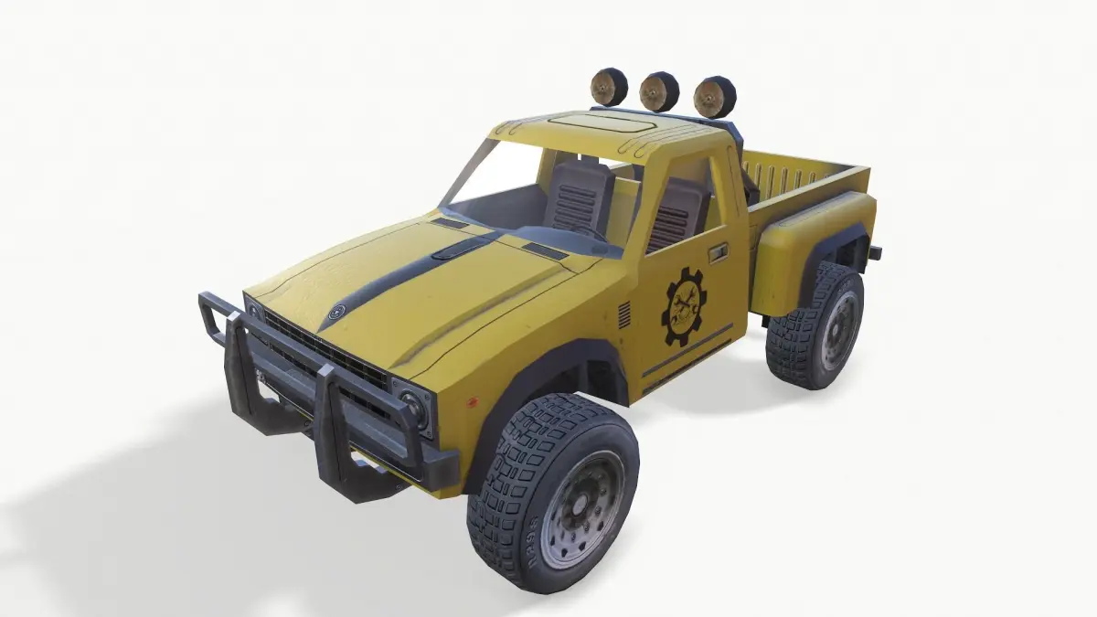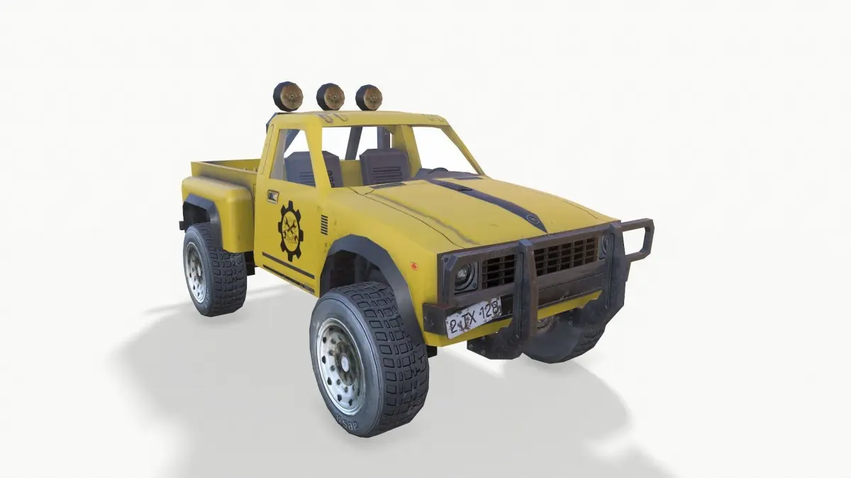 PickUp YellowZIP included file formats: -mb -fbx -dae -obj -TGA Low poly: 4463 tris TEXTURES: Pick_up_Yellow_AOPick_up_Yellow_DMPick_up_Yellow_MMPick_up_Yellow_NMPick_up_Yellow_RMPick_up_Yellow_HM(4096x4096) PickUp_glass_AOPickUp_glass_DMPickUp_glass_MMPickUp_glass_NMPickUp_glass_RMPickUp_glass_HM(2048x2048)The scene was modeled with Autodesk Maya 2018. All objects are grouped and named correct for easily selections and management. No special plug-in needed to open the scene. Entire scene was modeled at real scale. This model is scaled to real world. Units of measurement: centimeters. All materials named correct. Model include game-ready texture. Very easy to work it.