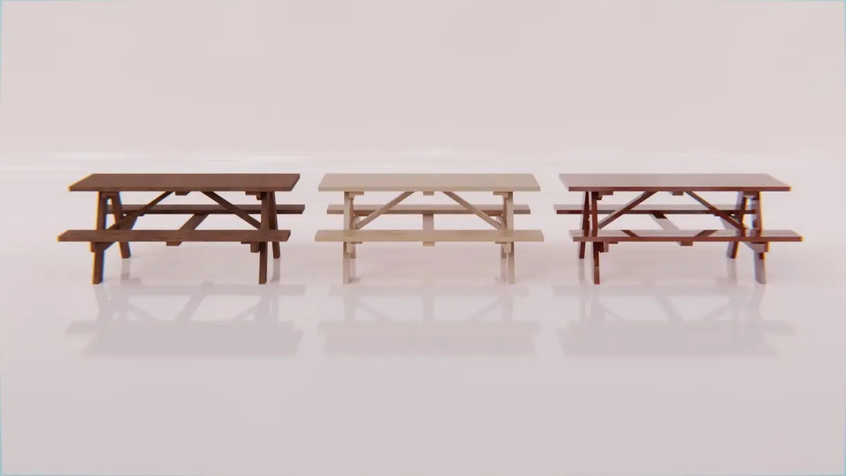 It includes the following components:Picnic table lowpoly 3d model and 3 different color 4k textures