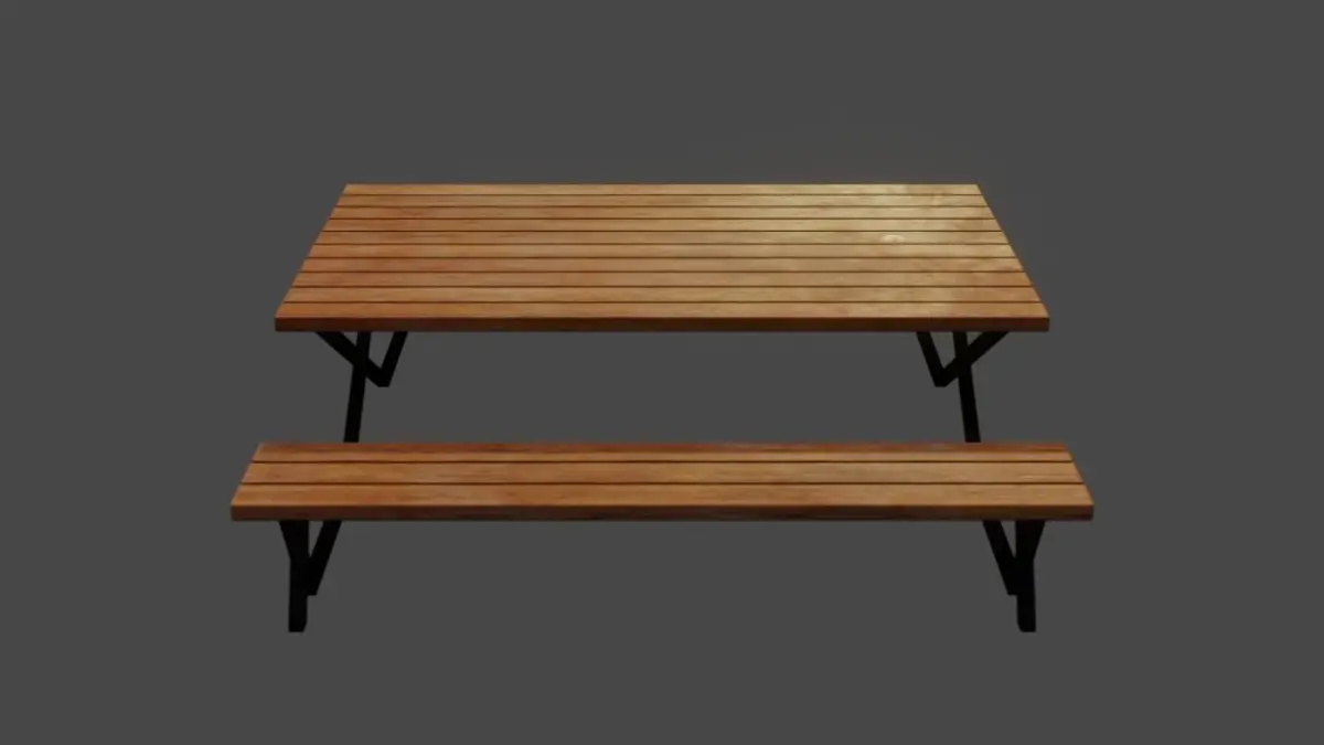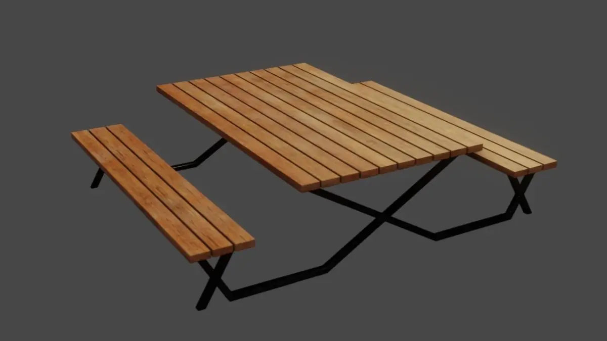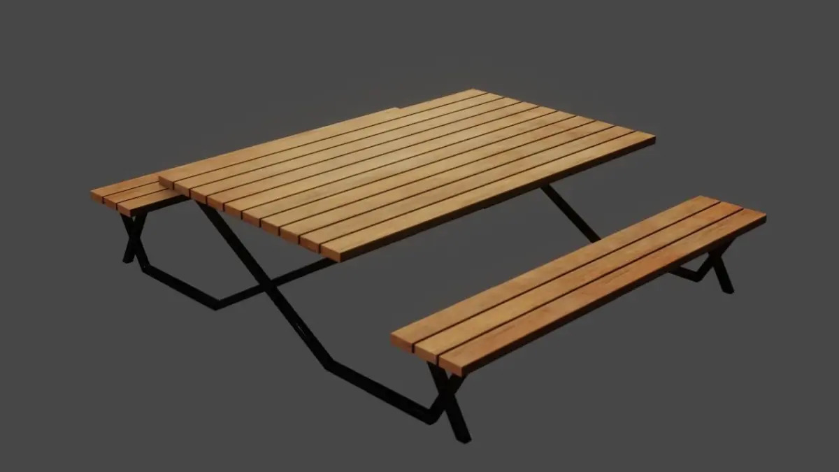 Low Poly 3D model of a elegant Picnic Table, with editable and realistic looking textures in 4K. Consist of 1 table and 2 benches made from wood planks with connecting legs made from metal. Suited for your projects, animations, games, VR, AR, etc.