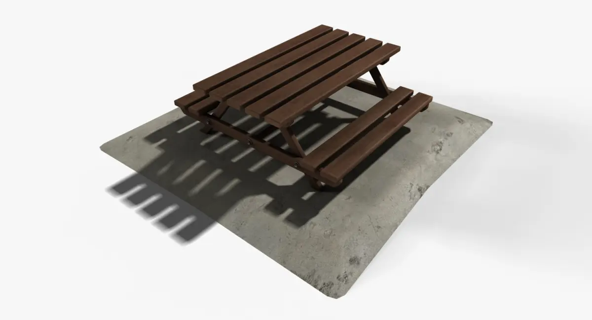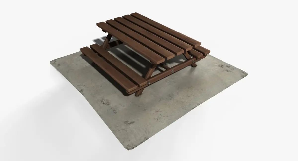 Picnic Table-------------------------------------------Height: 75 cmWidth: 285 cmLength: 280 cm -------------------------------------------Note : This model is intended for Visualization/Walk Through Animation/Cinematic Production/Animation/Game/Realtime/Background use.